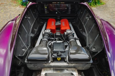 The current owner decided to rip off the black and paint it in its current stunning shade of Viola Hong Kong to honor its history. Additional work included a Cambio Manuale six-speed manual transmission conversion and an overhauled color-keyed black Alcantara interior. The resulting creation was a hypercar like nothing else on the planet. It delivers the handling and responsiveness of a true track machine.