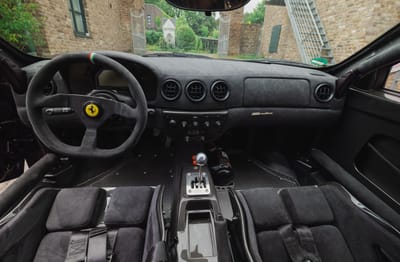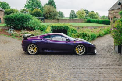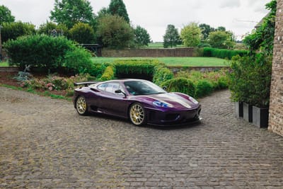 This car, dubbed “Viola,” started out life as a white 360 Challenge. It was the only white Challenge converted to an N-GT by Michelotto. Unique for being the only 1 of 16 original 360 N-GTs to have never been raced, it then went into a private collection in Hong Kong. Ultimately, it was imported to the EU by a Swiss Ferrari VIP client that commissioned the Italian automaker to make the car street legal and paint it black.