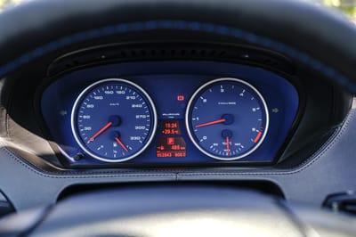 Blemishes in the paint of this 2008 B6S are highlighted in the gallery along with paint meter readings. Per the owner, the front fenders were not tested as they are made of plastic, while the hood and trunk were not tested as they are made from carbon fiber. The owner also notes that this Alpina has never been in an accident and that the bumpers have been repainted.
