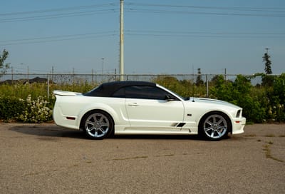 SBX Cars is proud to offer for sale this 2006 Ford Saleen Mustang S281 3V convertible showing 23,338 miles at the time of this cataloging. Finished in Performance White with a black retractable top over a Dark Charcoal leather interior, this Saleen is offered by the seller in Quebec, Canada with a CARFAX report.