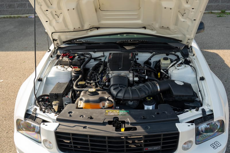 Since 1984 when the first Saleen-upgraded Mustang was crafted, Saleen has partnered with Ford in producing high-performance pony cars with elevated muscle, aerodynamics, styling, and braking systems. Building on the popular fifth-generation Mustang platform, this S281 convertible received the full treatment, starting with a supercharged V8 with a Series VI screw-type supercharger, Saleen “Powerflash” calibration, a performance air filter, and a 2.5-inch exhaust system. Handling and braking were enhanced via Saleen-specific front and rear springs as well as an exclusive 14-inch brake system.