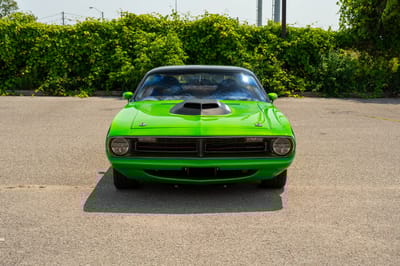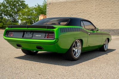 SBX Cars is proud to offer for sale this 1970 Plymouth 'Cuda showing just 298 km (185 mi) on the odometer at the time of cataloging. Finished in two-tone Snakeskin Green and black over a black leather and vinyl cabin, this incredible ‘Cuda is the definition of a no-expense-spared restomod.