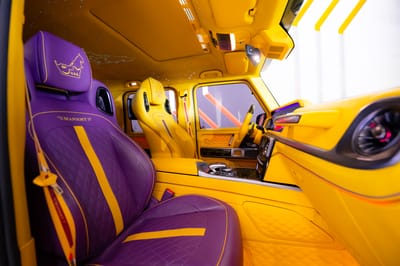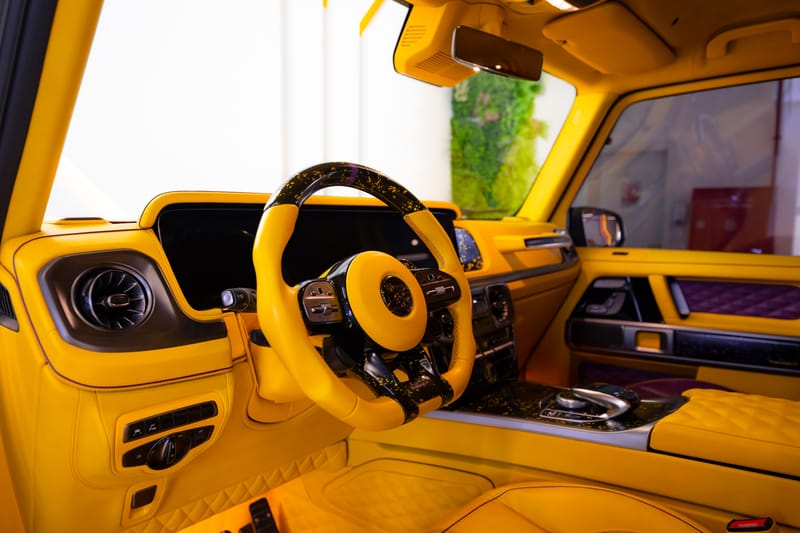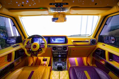 And indeed, this G63 P900 is a work of art. From front to back, inside and out, it has been dressed by Mansory in distinct colors and materials – with an emphasis, of course, on celebrating the UAE’s special anniversary. Just get a glimpse of the vivid interior which has been completely trimmed in yellow and purple. It even features an illuminated jewel-style headliner with a map outline of the UAE.
