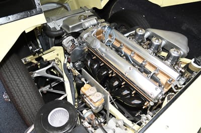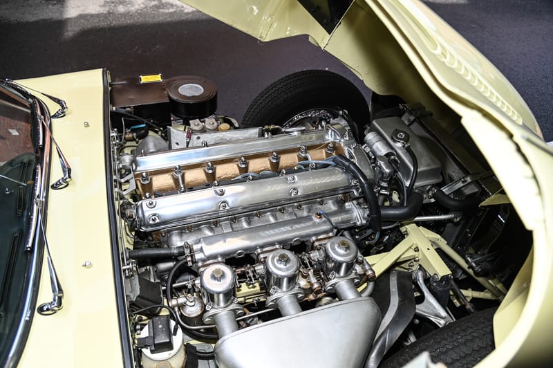 According to documentation from Jaguar Heritage Trust, this unit bearing chassis number 1E 15293 was assembled in Coventry on April 6,1967 in Carmen Red over a black leather interior, then subsequently distributed by Jaguar Cars of New York. In more recent years, it was restored in a period-correct exterior color. A complete mechanical overhaul has been performed involving the running gear, suspension, braking system, and chassis. Accompanying the car is a large library of receipts and photos for such.