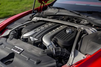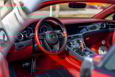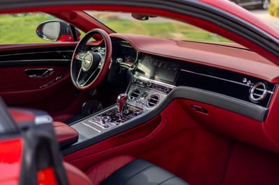 - Red-finished brake calipers with white Bentley branding