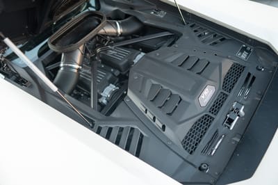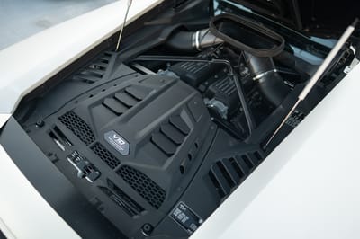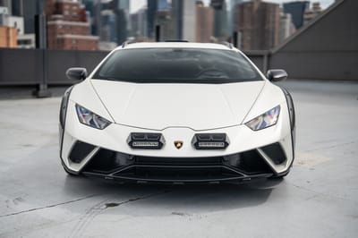 The hood-mounted light pods, bulging fender flares, knobby tires, and roof-mounted snorkel make it clear to even the casual observer that this is no ordinary Lamborghini. But aficonaods know these Huracán swan songs are nothing short of epic with their glorious mid-mounted V10, true off-road capabilities, and dedicated Rally driving mode.