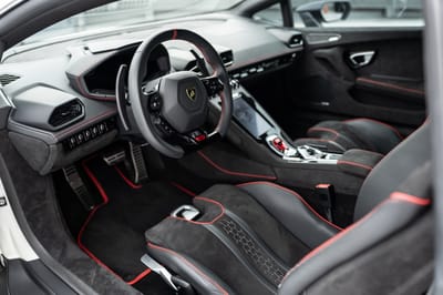 - Carbon fiber bucket seats with red Lamborghini logo headrest embroidery
