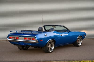 SBX Cars is proud to offer for sale this 1971 Dodge Challenger convertible restomod showing just 5,572 mi (8,967 km) on the odometer at the time of cataloging. Finished in metallic blue with a blue soft top and dark blue leather interior, this classic Challenger has been completely re-engineered from the ground up.