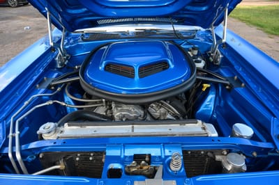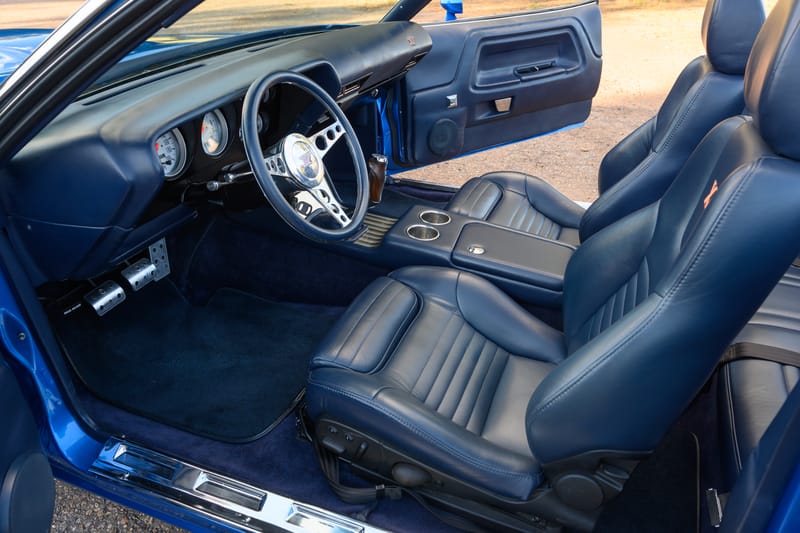Built by XV Motorsports, the Mopar pro-touring specialists, this 1971 Dodge Challenger has a fully modernized chassis, a completely overhauled interior, a shimmering blue finish said to become iridescent in the sun, and a hard-hitting HEMI V8 up front.