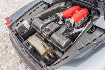 - Longitudinal rear mid-mounted F136 4.3-liter DOHC V8
