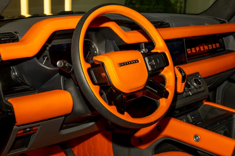 The Alpha Wolf’s imposing stance is made possible via an aggressive body kit, complemented by gloss black and orange details, front and rear spoilers, a ventilated hood, and unique side skirts. The transformation continues to the cabin, where custom eye-catching upholstery is joined by all the expected creature comforts of a luxury Land Rover SUV.