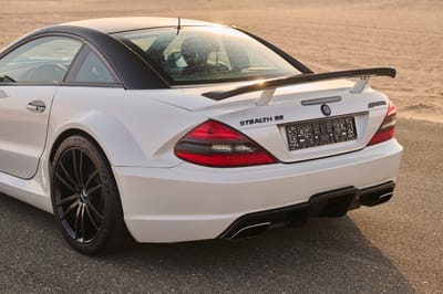 Commissioned to be the most powerful Brabus-tuned SL65 Black Series ever, it boasts scorching power, pavement-rippling torque, custom carbon fiber upgrades, and unique instrumentation. True to its Stealth moniker, however, this particular SL65 Black Series manages to fly under the radar, even though it can hit 200 mph with ease.