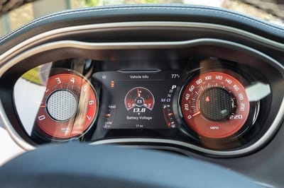 • Red analog 7,000-rpm tachometer and 220-mph speedometer
