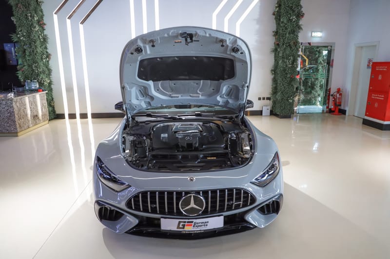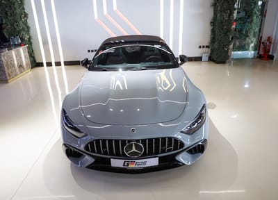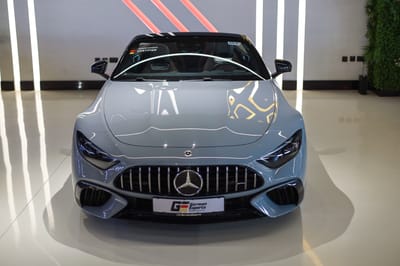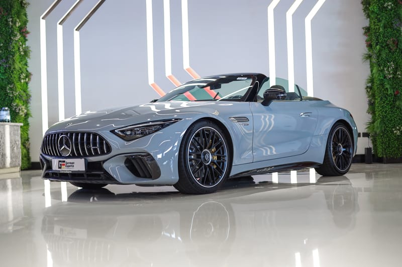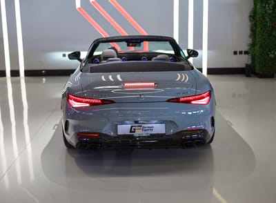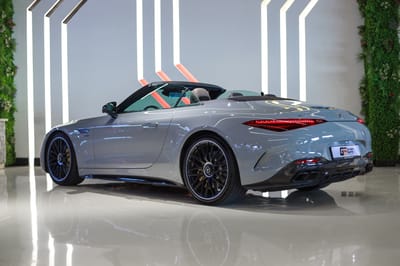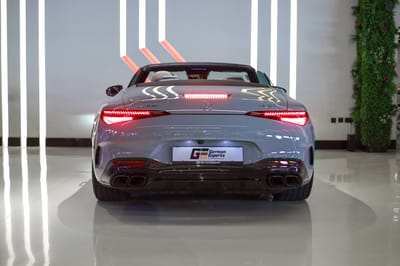 SBX Cars is proud to offer for sale this 2023 Mercedes-Benz SL63 AMG convertible showing 7,892 kilometers (4,904 miles) at the time of this cataloging. Finished in Nardo Grey with a power-retractable soft top over a brown leather interior, it is offered by GE Motors in Dubai.