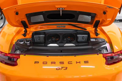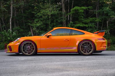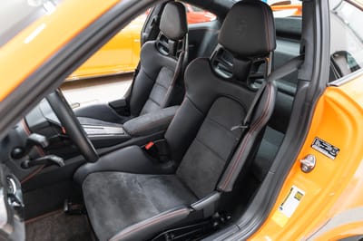 The 991.2-generation GT3 combines everything that makes a Porsche so desirable — that 9,000-rpm, free-breathing, screamer of an engine, a crisp-shifting 6-speed stick, and world-class dynamics. This example goes even further with its eye-popping Pastel Orange design, carbon fiber seats, and single-owner provenance.