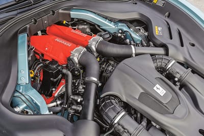 Bearing serial number 313821, this stunning unit in unique Celeste Trevi received a long list of bespoke enhancements as part of a personalized configuration. Included in its equipment list are 20-inch matte grey wheels, a quad-outlet sport exhaust system, Daytona-style ventilated seats, a neck warmer, aluminum driver and passenger footrests, and a carbon fiber steering wheel. Technology abounds inside the cockpit, courtesy of a surround-view camera system, a wireless smartphone system with MyFerrari Connect, and a premium high-fidelity sound system.