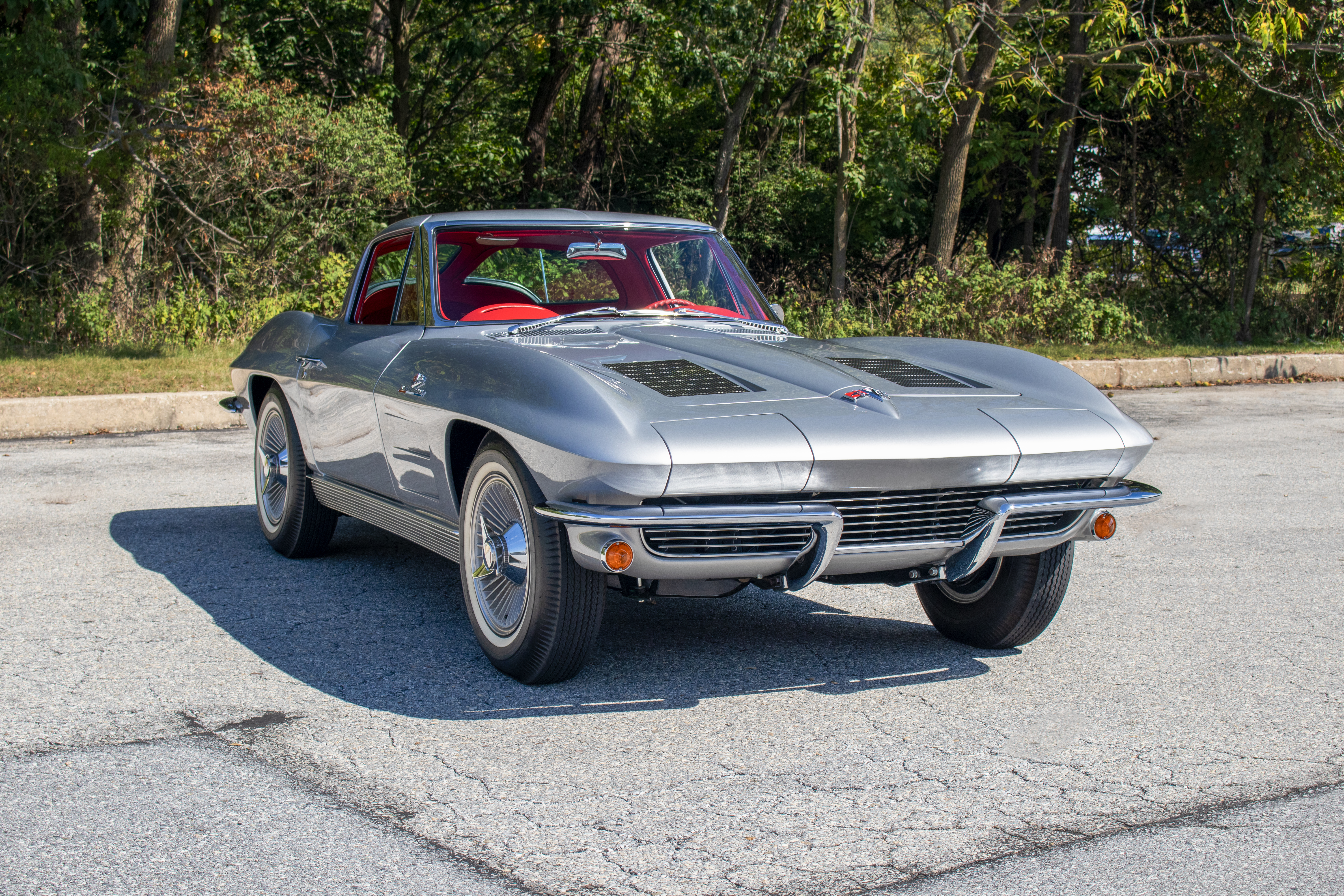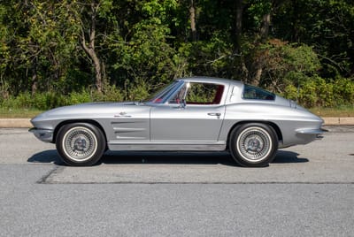 The car was refinished in its striking combination of a Sebring Silver paint job complemented by a red vinyl interior. Under the hood, the Rochester-fuel-injected 327ci small-block V8 has been rebuilt by Engines Limited in Omro, Wisconsin. In recent months, the car underwent over $18,000 in mechanical work by County Corvette in West Chester, Pennsylvania – a specialized facility with over 30 years of experience in Corvette preservation and restoration. This split-window has been built and maintained by the best of the best, and today, it is a muscle car suited to the most discerning Corvette aficionado.