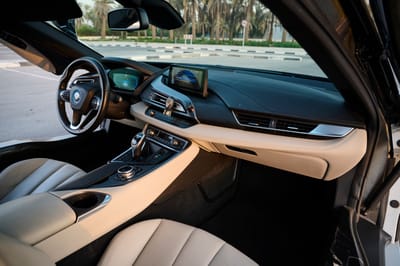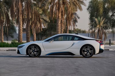 SBX Cars is proud to offer for sale this 2014 BMW i8 showing 21,690 kilometers (13,478 miles) at the time of this cataloging. Finished in Crystal White Pearl over an Ivory White leather interior, this GCC-region hybrid supercar is now offered in Dubai with service records and an AutoHub inspection.