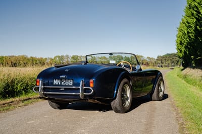 A landmark of performance and design, this AC Cobra captures the essence of analog driving with all-time collectible provenance. With its unfettered blue exterior, classic black leather interior, and the aural wonder of a free-breathing 289 Hi-po V8, this stunning example offers the pure Cobra experience.