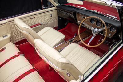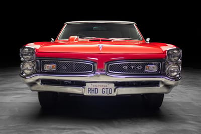 The 1967 GTO is a cornerstone of American performance cars, and this right-hand-drive export-market convertible adds a compelling twist to the legend. With its vivid Regimental Red finish over Parchment vinyl, hood-mounted tach, and Redline tires, today’s GTO is truly firing on all cylinders.