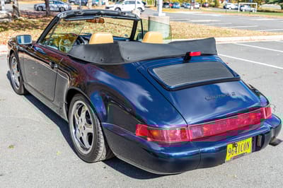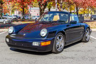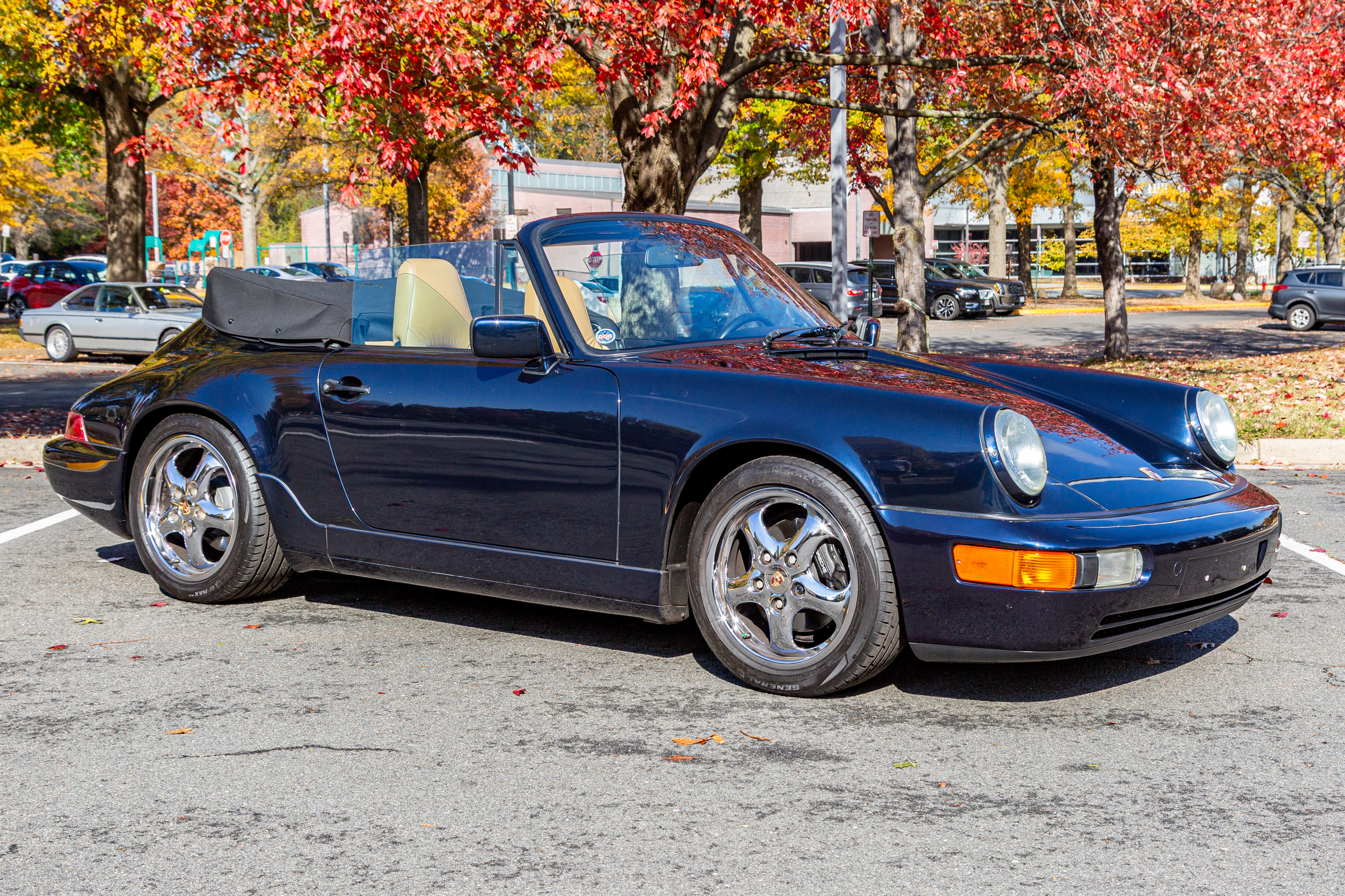 This 1991 Porsche 911 Carrera 2 Cabriolet is pure air-cooled joy — Midnight Blue, tan leather, and extensive recent work — timeless drop-top perfection.