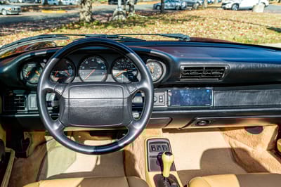 SBX Cars is proud to offer for sale this 1991 Porsche 911 Carrera 2 Cabriolet, showing 89,728 miles on the odometer at the time of cataloging. Finished in Midnight Blue Metallic over tan leather, this 964-generation Cabriolet delivers the unmistakable style of a classic 911.