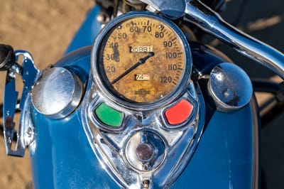 The generator has been rebuilt and the speedometer was restored by John Bordas. Also, per the seller, the oil is changed every 300 miles with Valvoline straight 60 weight racing oil.