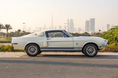 Where a legendary racing pedigree meets production rarity, you’ll find the 1968 Shelby GT350. It was a car built for a select few – and it embodied everything that Carroll Shelby envisioned for the ideal performance-oriented Mustang. This Wimbledon White fastback presents an opportunity to acquire one of automotive history’s most significant pony cars, complete with an authenticated pedigree and the backing of one of Dubai’s premier specialty-car dealerships.