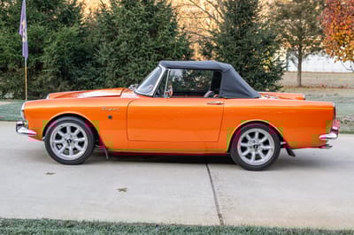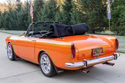 The Sunbeam Tiger Mk1 blends lightweight British roadster dynamics with American V8 muscle. This meticulously restored example, finished in distinctive Creamsicle and equipped with its original 260 V8 and 4-speed manual, offers a rare combination of craftsmanship, personality, and authentic Tiger performance.