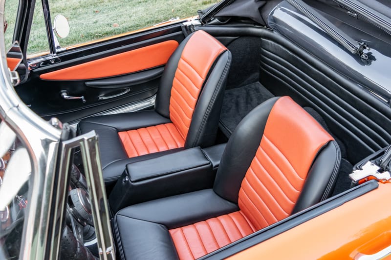 SBX Cars is proud to offer for sale this 1965 Sunbeam Tiger Mk1, showing just 94,098 mi (151,439 km) on the odometer at the time of cataloging. Finished in Creamsicle over a custom orange and black leather interior, this Tiger is a beautifully restored take on one of the most desirable Anglo-American roadsters of the 1960s.