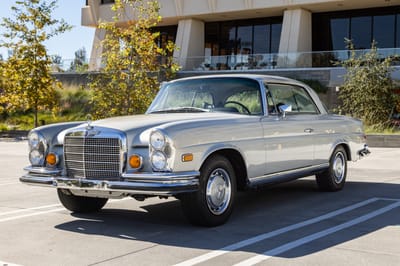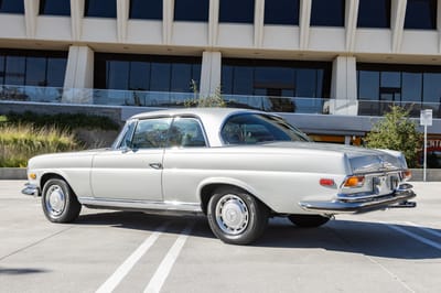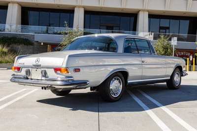 SBX Cars is proud to offer for sale this 1970 Mercedes-Benz 280SE coupe showing 110,472 documented miles on the odometer at the time of this cataloging. Finished in Silver Grey Metallic over a black leather interior, this W111 coupe is offered in California with records, manuals, two keys, and a clear title.