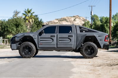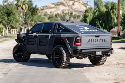 Beginning with Ram’s flagship TRX platform, Apocalypse Manufacturing transformed the truck with aggressive Kevlar bodywork, beefed-up off-road hardware, and a commanding stance that leaves no doubt about its intent. Every visual element is designed to amplify presence, from the widened track to the exposed functional components.
