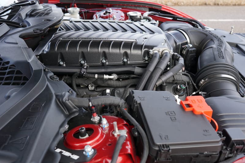 The Shelby Super Snake is seen by many as a modern nod to traditional gas-powered muscle cars, and it pushes the boundaries of what a street-legal Mustang can do on a track. The heart of the beast is a Gen 4 Coyote 5.0-liter V8 that has been upgraded with a Whipple 3.0-liter supercharger – producing in excess of 800 horsepower. Shelby says that the Coyote + Whipple supercharger combination results in a “Symphony of performance, where raw power meets precision craftsmanship.”