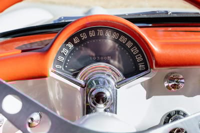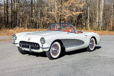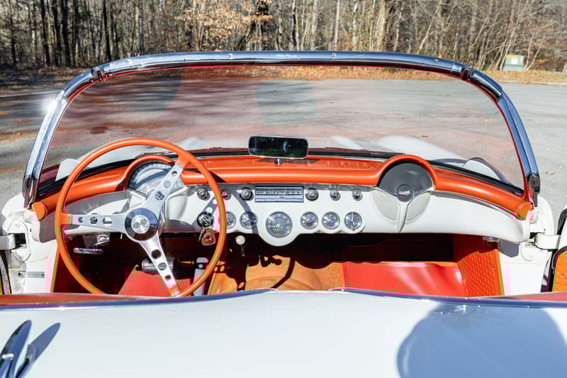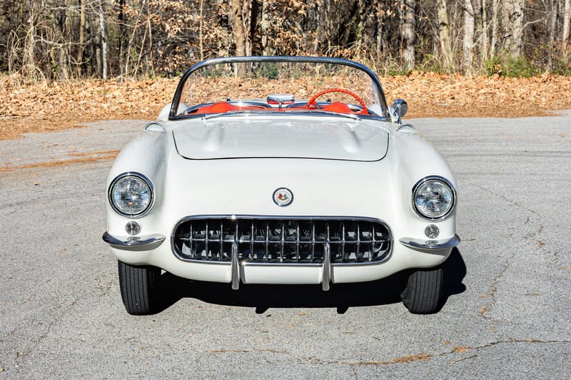 SBX Cars is proud to offer for sale this 1956 Chevrolet Corvette, showing just 19,389 mi (31,203 km) on the odometer at the time of cataloging, though true mileage is unknown. Finished in Polo White with Silver coves over a red vinyl interior, this C1 presents as a remarkably authentic early-production Corvette.