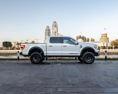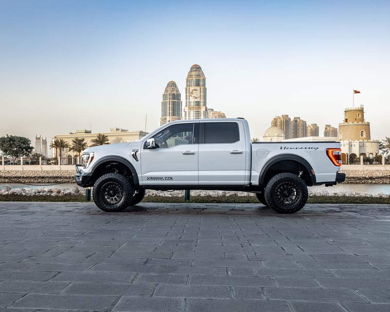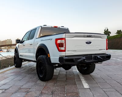 SBX Cars is proud to offer for sale this 2021 Ford F-150 Lariat SuperCrew Hennesey Venom 775 pickup showing just 29,487 kilometers (18,322 miles) on the odometer at the time of this cataloging. Finished in Space White over a black leather interior, this limited-production pickup is offered in Doha, Qatar with a certificate of authenticity from Hennessey and a clean CARFAX report.