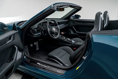 This Fjord Green 911 Carrera T Cabriolet is as-new, manual, and pure Porsche joy—102 miles, Paint to Sample, titanium pipes. Drop the top and drive forever!