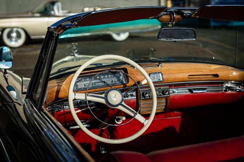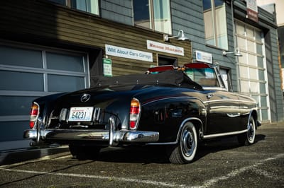 Introduced in the mid-1950s as a lineup of full-sized luxury automobiles, the W180 lineup became known for its “Ponton” styling, unibody architecture, and class-leading premium materials. Coupes and Cabriolets, hand-finished at Sindelfingen, received enhanced details like authentic wood trim and rich leather interiors. When compared to the broader 180-chassis sedan series, the Cabriolets were considerably rarer; this example is said to be one of just 1,066 units produced for its year.