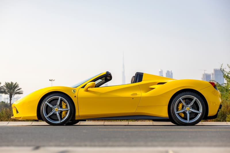 This 488 Spider has been serviced at Al Tayyer, the official Ferrari dealer, and new tires were fitted in 2025.