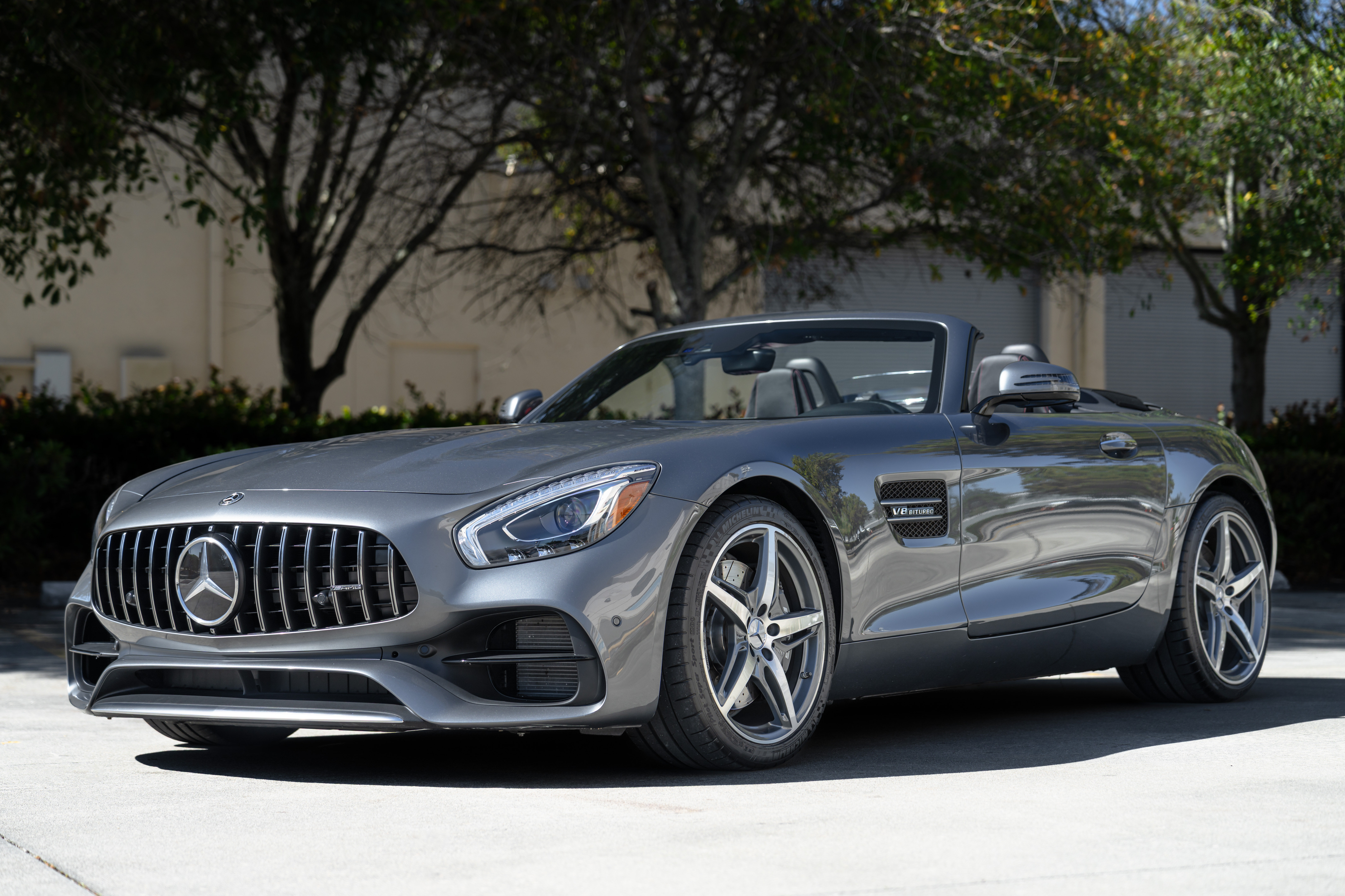 Drop the roof and feel it: AMG GT Roadster drama, long-hood beauty, thunderous exhaust, luxury tech, low miles, and pure top-down supercar bliss.
