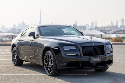 This Wraith Black Badge is described as a one-owner, EU-spec example that was originally purchased in Japan and later shipped to Dubai.