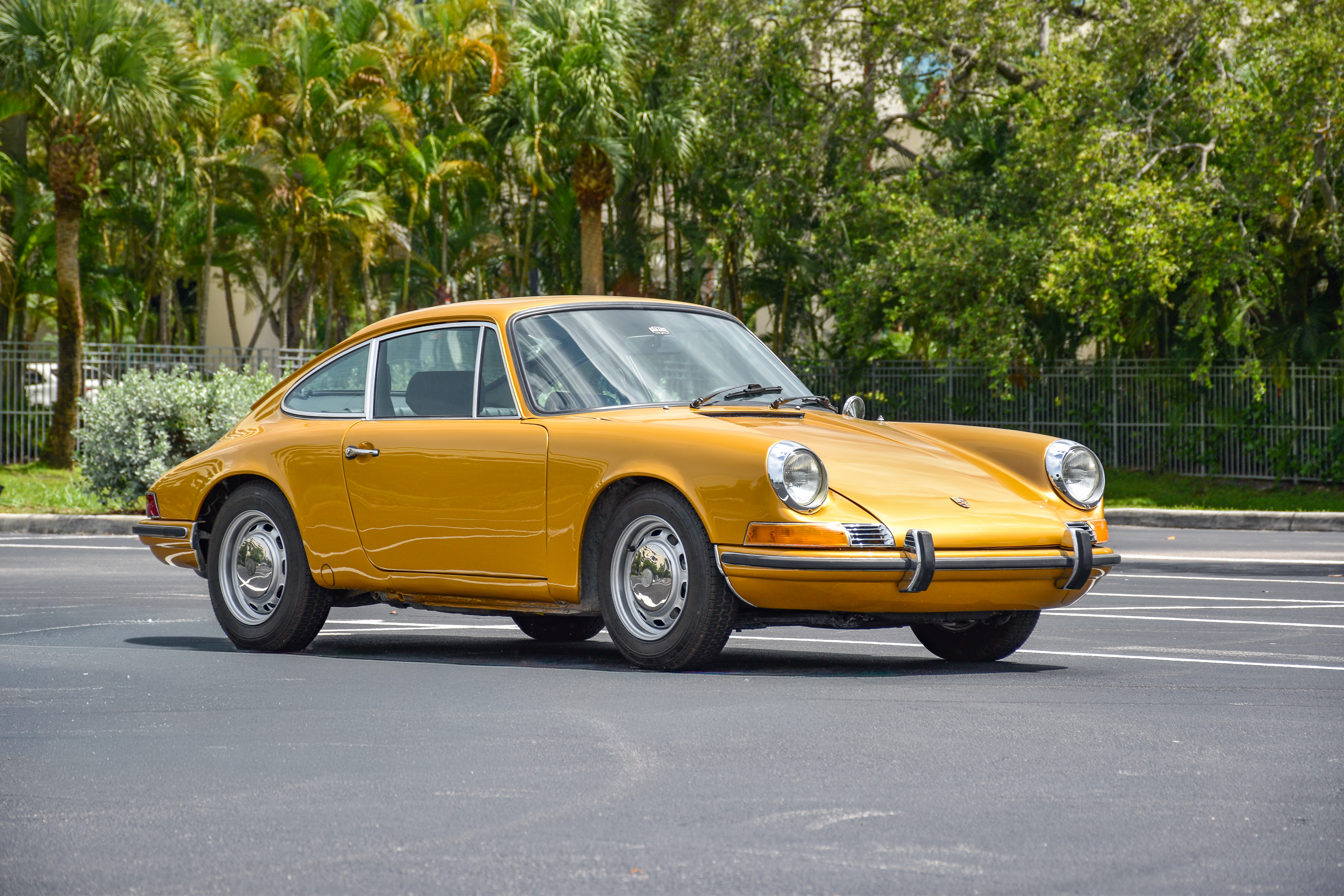 SBX Cars is proud to offer for sale this 1971 Porsche 911T Coupe showing 1,328 miles on the odometer at the time of this cataloging. Finished in Gold Metallic over a black leatherette interior, this air-cooled 911 is offered by Miami Garage Classics with a Certificate of Authenticity, restoration documentation, service records, original booklets, and a clear title.