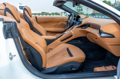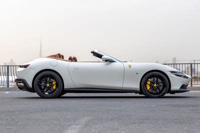 SBX Cars is proud to offer for sale this 2025 Ferrari Roma Spider showing only 2,020 kilometers at the time of this cataloging. Finished in pearl white over a saddle leather interior, this GCC-market Type F169 is offered with a five-year Ferrari warranty and a seven-year Ferrari service package.