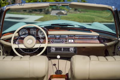 The W111-chassis Mercedes-Benz coupe and cabriolet models were known for high-end iconic styling from the moment they first debuted in 1961. They delivered distinctive and luxurious features for the era, like handcrafted interiors, four-wheel disc brakes, woodgrain trim, and fuel injection systems. For a unique blend of touring comfort and an interactive driving experience, some were also outfitted with manual transmissions, like this stunning, rare four-speed manual 250SE Cabriolet.