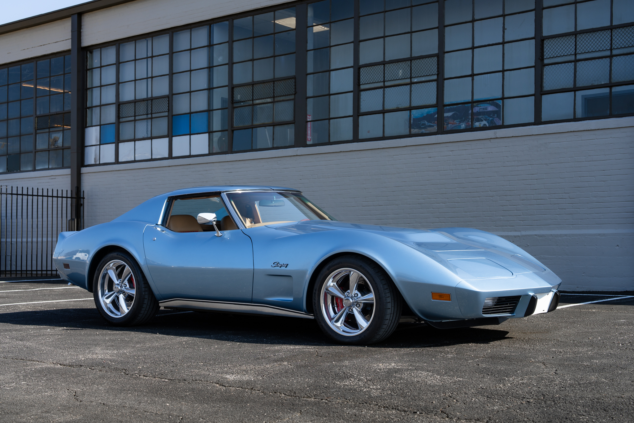 SBX Cars is proud to offer for sale this 1975 Chevrolet Corvette Stingray showing 44 miles on the odometer at the time of this cataloging. Finished in Schwab Blue over a saddle leather and Tartan plaid cloth interior, this bespoke C3 restomod is now offered with restoration documentation and a clear title.