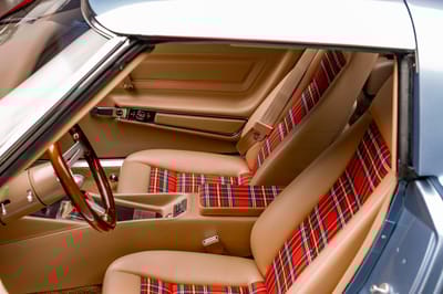 SBX Cars is proud to offer for sale this 1975 Chevrolet Corvette Stingray showing 44 miles on the odometer at the time of this cataloging. Finished in Schwab Blue over a saddle leather and Tartan plaid cloth interior, this bespoke C3 restomod is now offered with restoration documentation and a clear title.