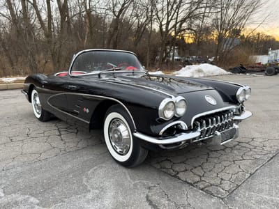 SBX Cars is proud to offer for sale this 1959 Chevrolet Corvette convertible showing 4 miles on the odometer at the time of this cataloging. Finished in Tuxedo Black over a red vinyl interior, this restored C1 is offered by County Corvette with recent service records and a clear title.
