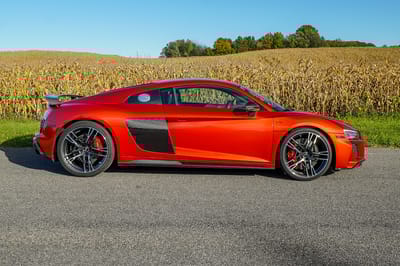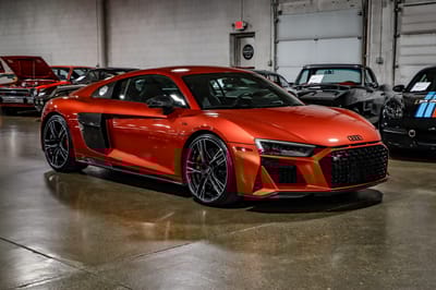 SBX Cars is proud to offer for sale this 2020 Audi R8 V10 Performance, showing just 15,949 miles (25,667 km) on the odometer at the time of cataloging. Finished in Audi Exclusive Aventurine Orange Mica and equipped with an extensive factory carbon fiber specification, this example delivers incredible visual presence to match its mechanical intensity.