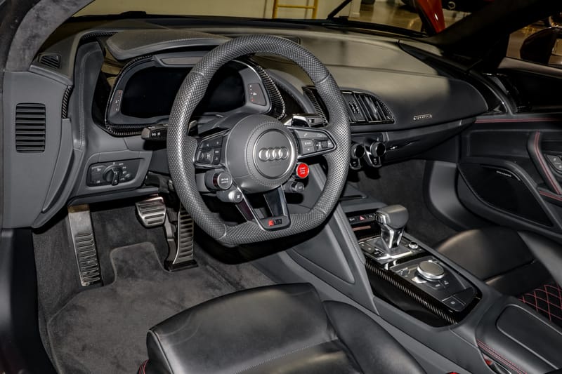 The Audi R8 V10 Performance represents one of the last true celebrations of the naturally aspirated high-revving supercar formula — an engine that delivers an unfiltered aural symphony. This example’s ultra-rare color, extensive carbon fiber specification, award-winning presentation, and documented care set it apart.