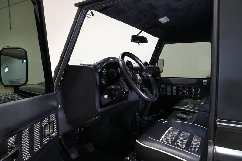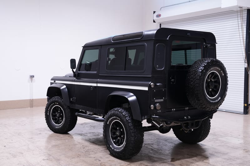 SBX Cars is proud to offer for sale this custom 1988 Land Rover Defender 90 showing just 16 post-restoration miles on the odometer at the time of this cataloging. Finished in matte black over a black and white two-tone Nappa leather interior, this Defender restomod is now offered with a build sheet and a clear title.