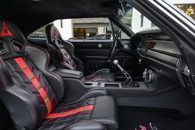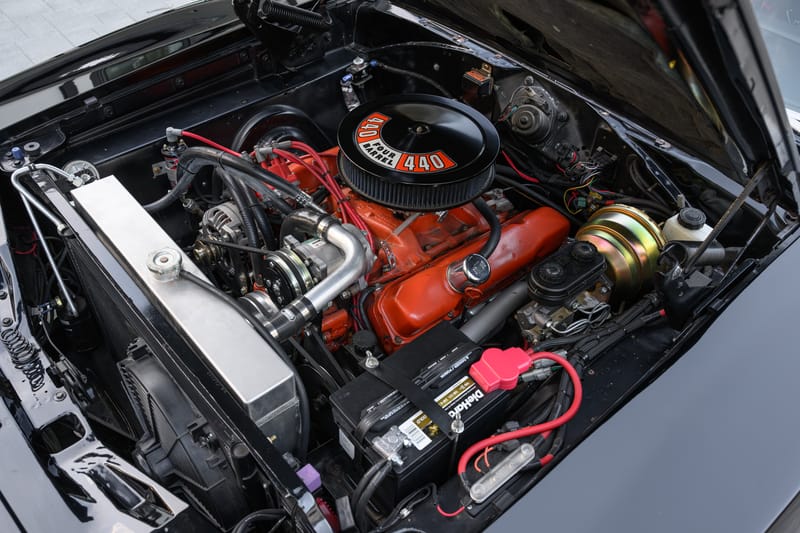 Inside, outside, and everywhere in between, this sleek Charger was fully reimagined by its builder to convey a unique creative vision. At its core is a numbers-matching V8 that was bored out and completely built up with a mild cam and TTI headers, all of which allows for comfortably cruising at 80 mph while turning only 2,500 RPM. Updated cooling and venting are optimized for today’s speeds and traffic, with the functioning hood vent dissipating heat and the large aluminum radiator and electric fans for additional cooling.
